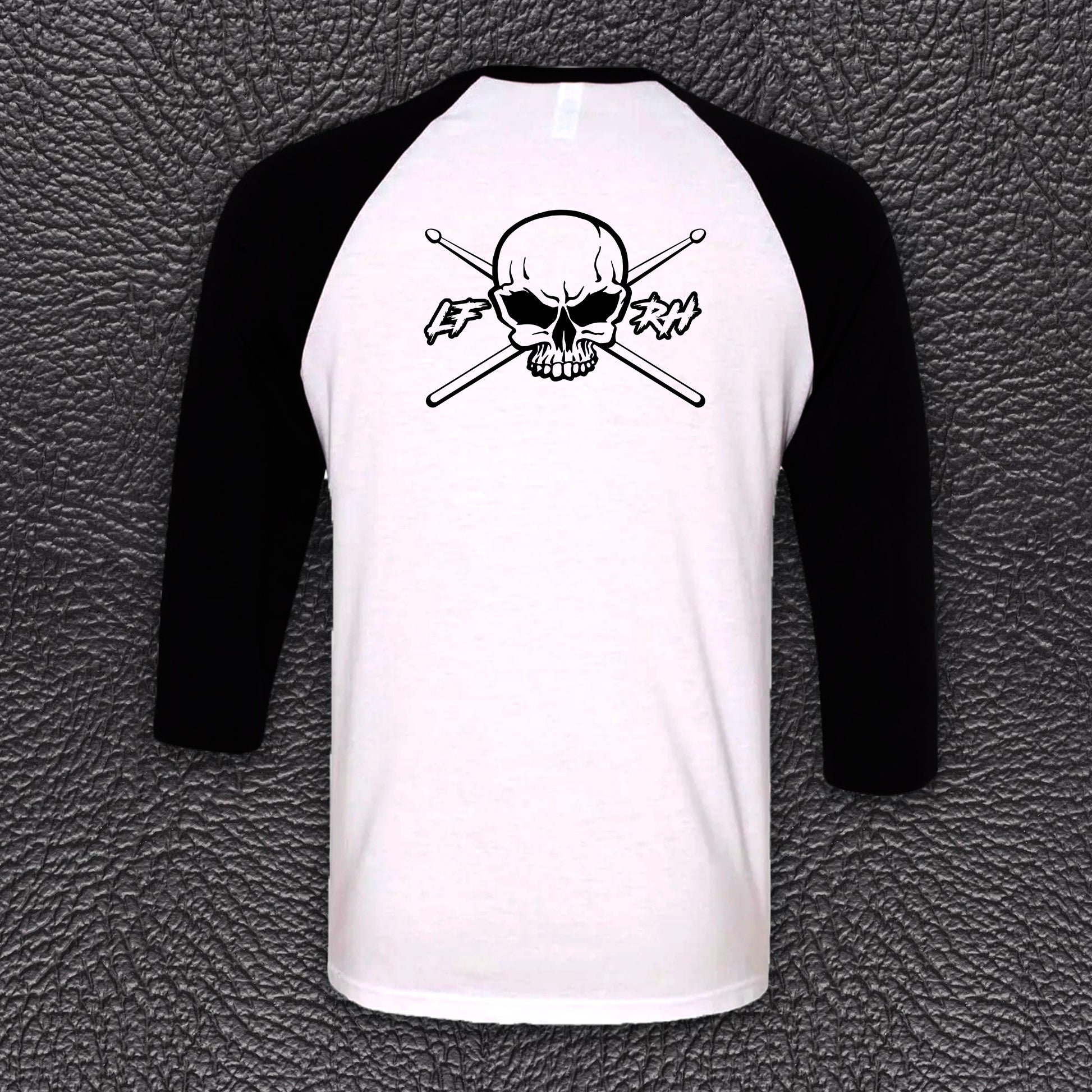 Business in the front, party in the back raglan style T-shirt, 3/4 sleeve! Featuring the large skull logo on the back!